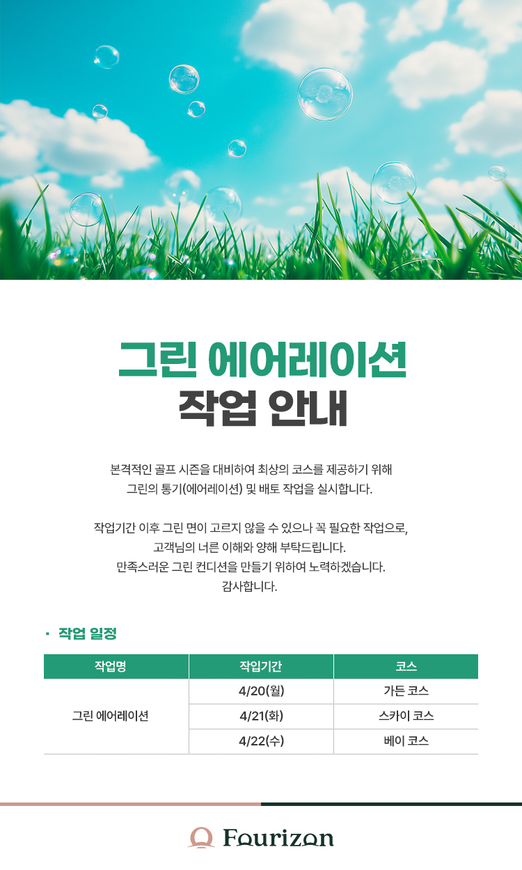 제목그린 에어레이션 작업 안내 2026-04-07